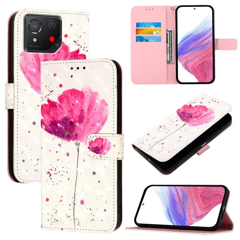 Θήκη τηλεφώνου από δέρμα με οριζόντιο άνοιγμα και τρισδιάστατη ζωγραφική για Asus ROG Phone 8 (Λουλούδι)