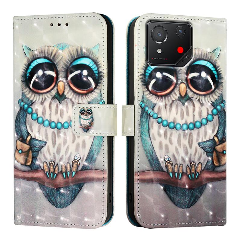 For Asus ROG Phone 8 3D Painting Horizontal Flip Leather Phone Case(Grey Owl)