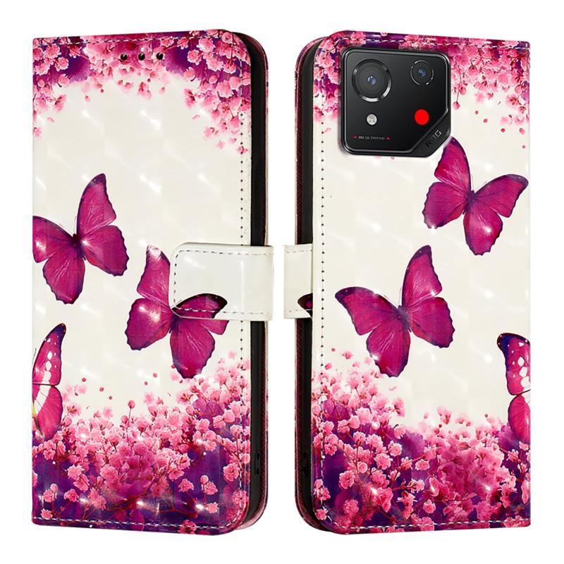 For Asus ROG Phone 8 3D Painting Horizontal Flip Leather Phone Case(Rose Butterfly)