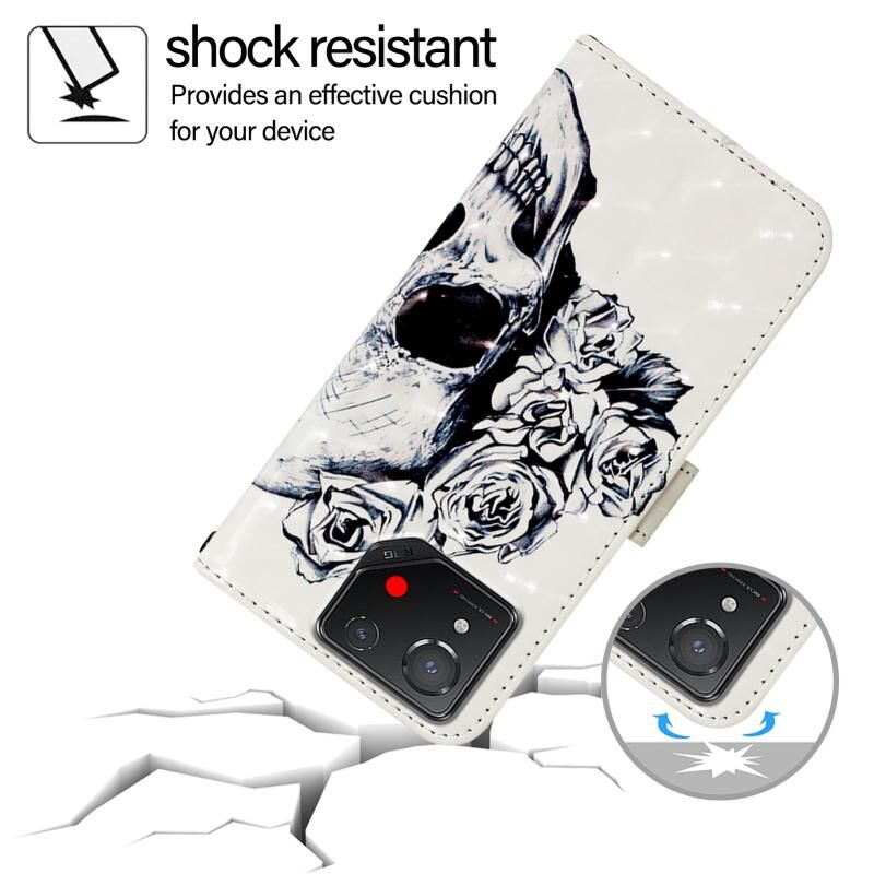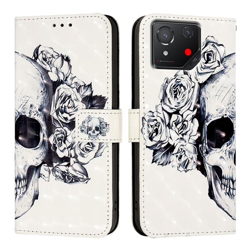 Θήκη τηλεφώνου από δέρμα με οριζόντιο άνοιγμα και τρισδιάστατη ζωγραφική για Asus ROG Phone 8 (Κρανίο)