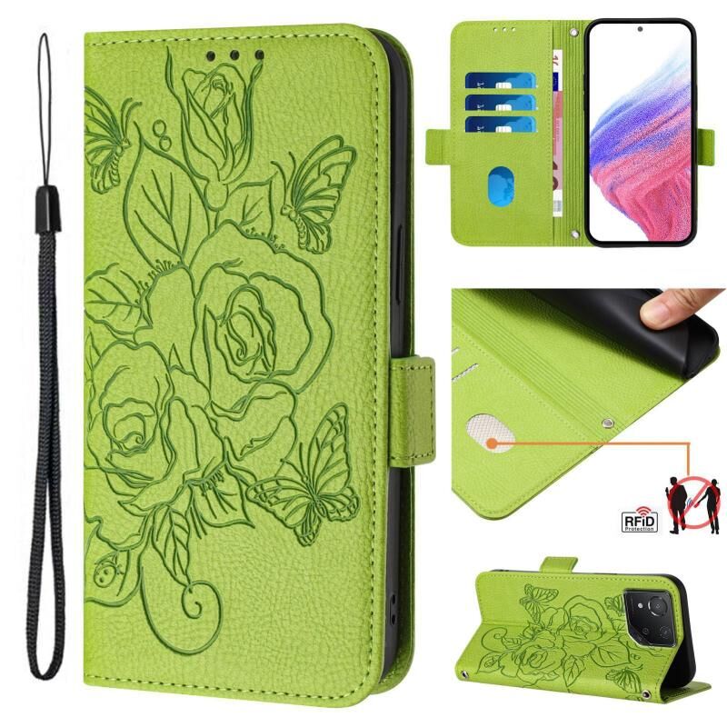 For Asus ROG Phone 8 / 8 Pro Embossed Rose RFID Anti-theft Leather Phone Case(Green)