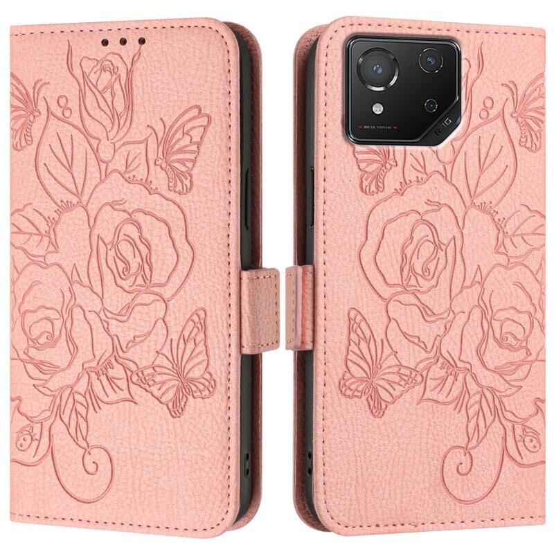 For Asus ROG Phone 8 / 8 Pro Embossed Rose RFID Anti-theft Leather Phone Case(Pink)