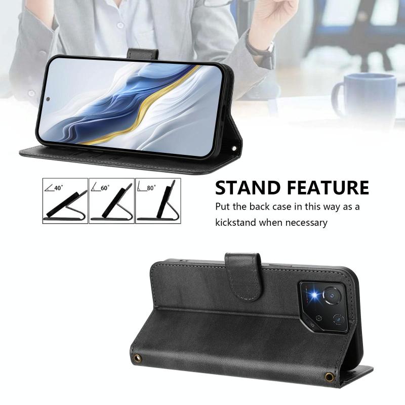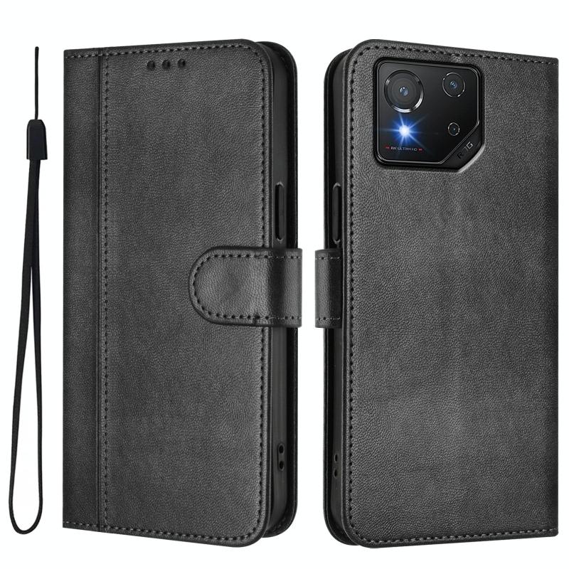 For ASUS ROG Phone 8 / 8 Pro Line Splicing Buckle Retro Leather Phone Case(Black)