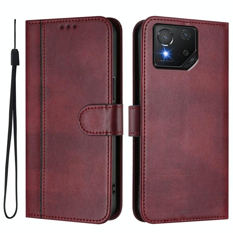 For ASUS ROG Phone 8 / 8 Pro Line Splicing Buckle Retro Leather Phone Case(Wine Red)