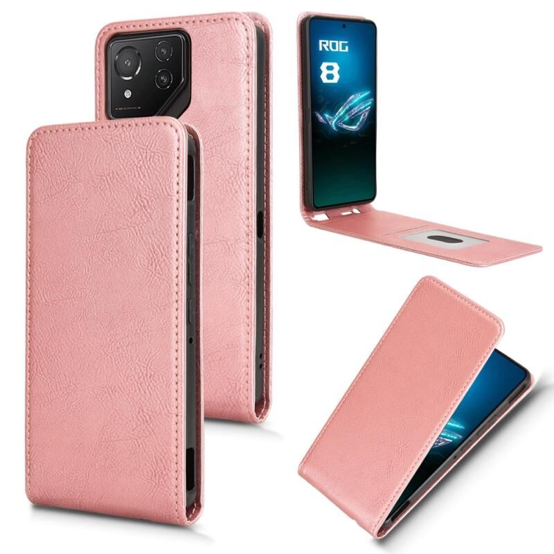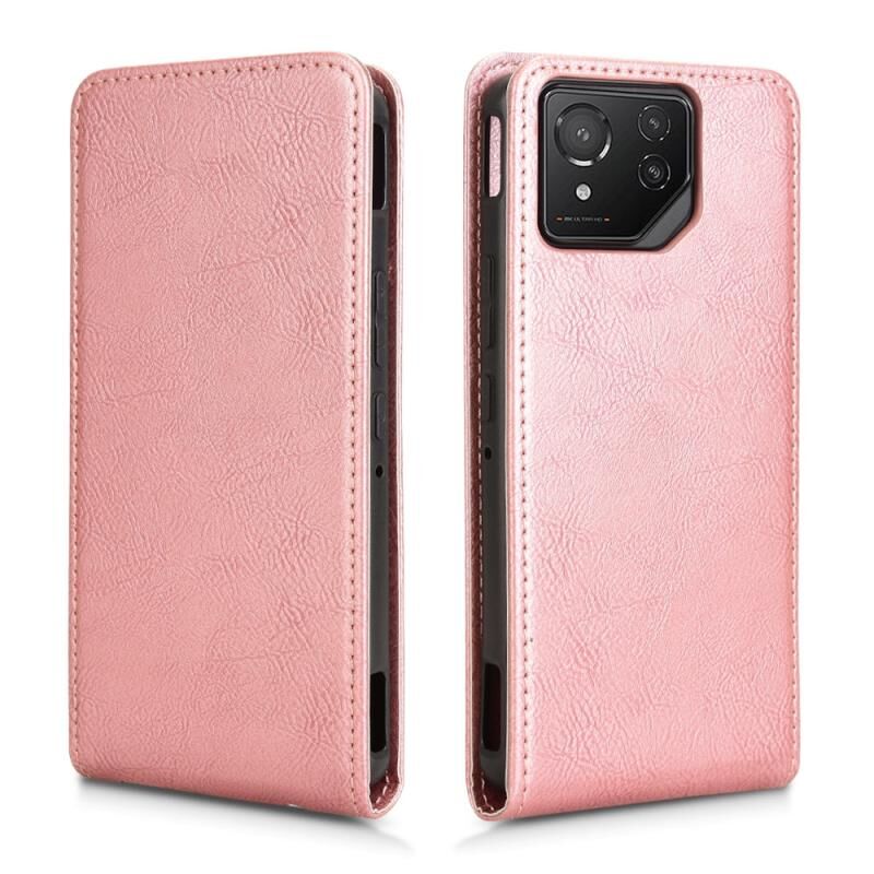 Θήκη τηλεφώνου από δέρμα με κάθετη αναδίπλωση και μαγνητική σύνδεση για ASUS ROG Phone 8 / 8 Pro (Χρυσορόδινο)