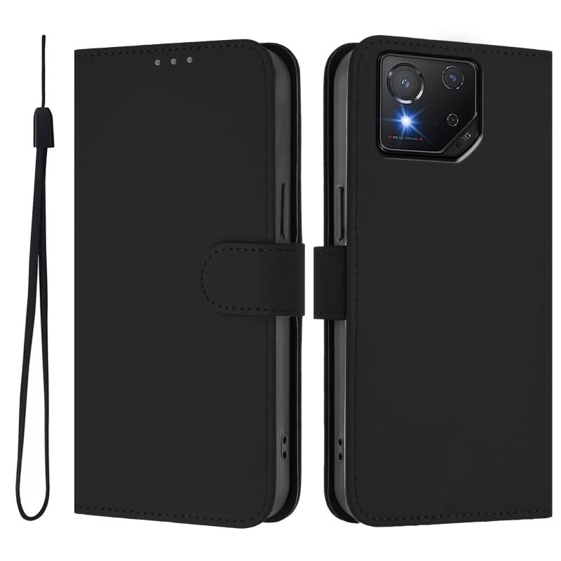 For Asus ROG Phone 8 / 8 Pro Skin Feel Solid Color Leather Phone Case with Lanyard(Black)