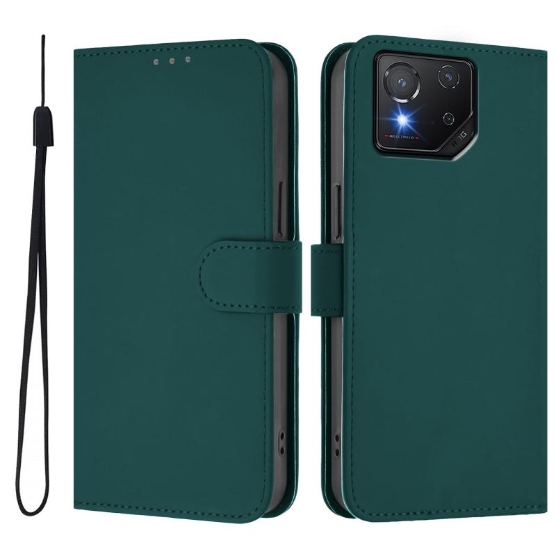 For Asus ROG Phone 8 / 8 Pro Skin Feel Solid Color Leather Phone Case with Lanyard(Dark Green)