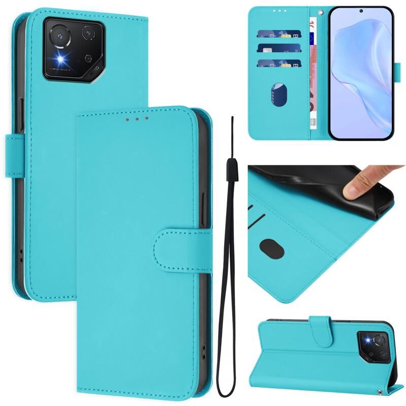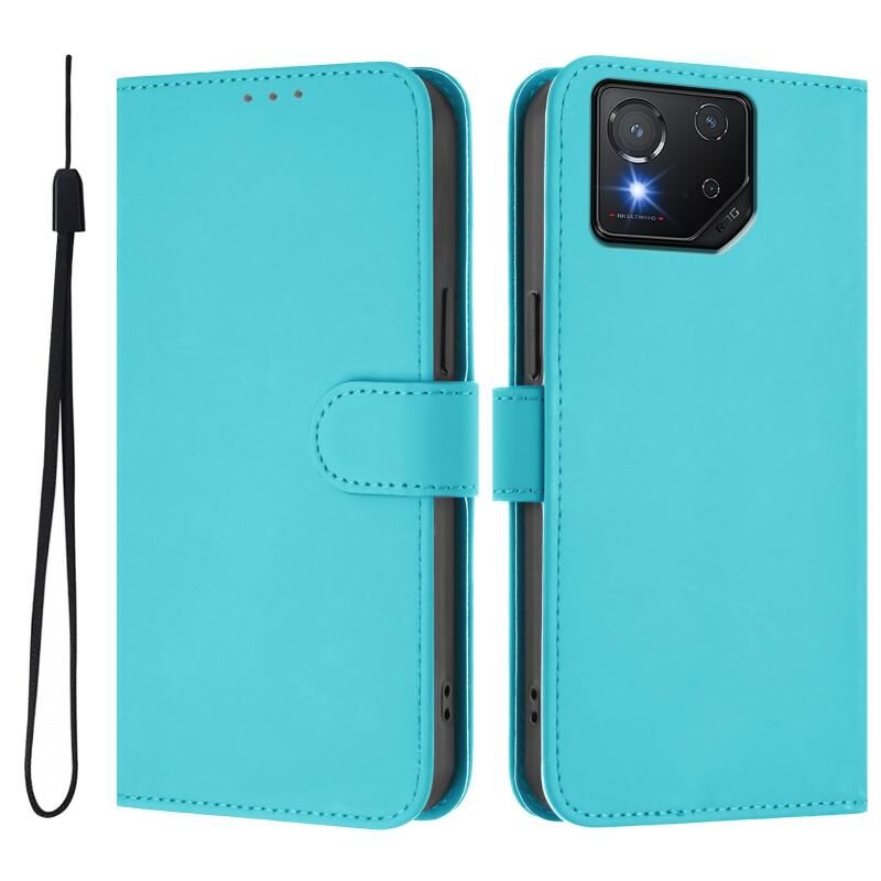 For Asus ROG Phone 8 / 8 Pro Skin Feel Solid Color Leather Phone Case with Lanyard(Lake Blue)
