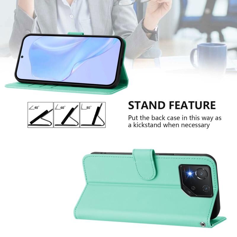 For Asus ROG Phone 8 / 8 Pro Skin Feel Solid Color Leather Phone Case with Lanyard(Mint Green)