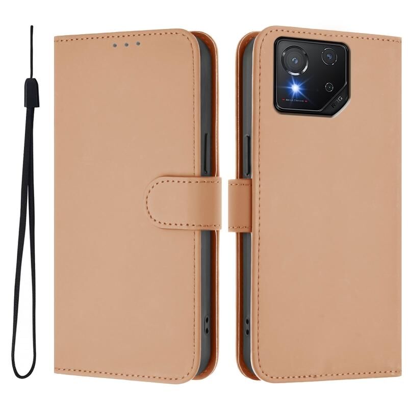 For Asus ROG Phone 8 / 8 Pro Skin Feel Solid Color Leather Phone Case with Lanyard(Nude)