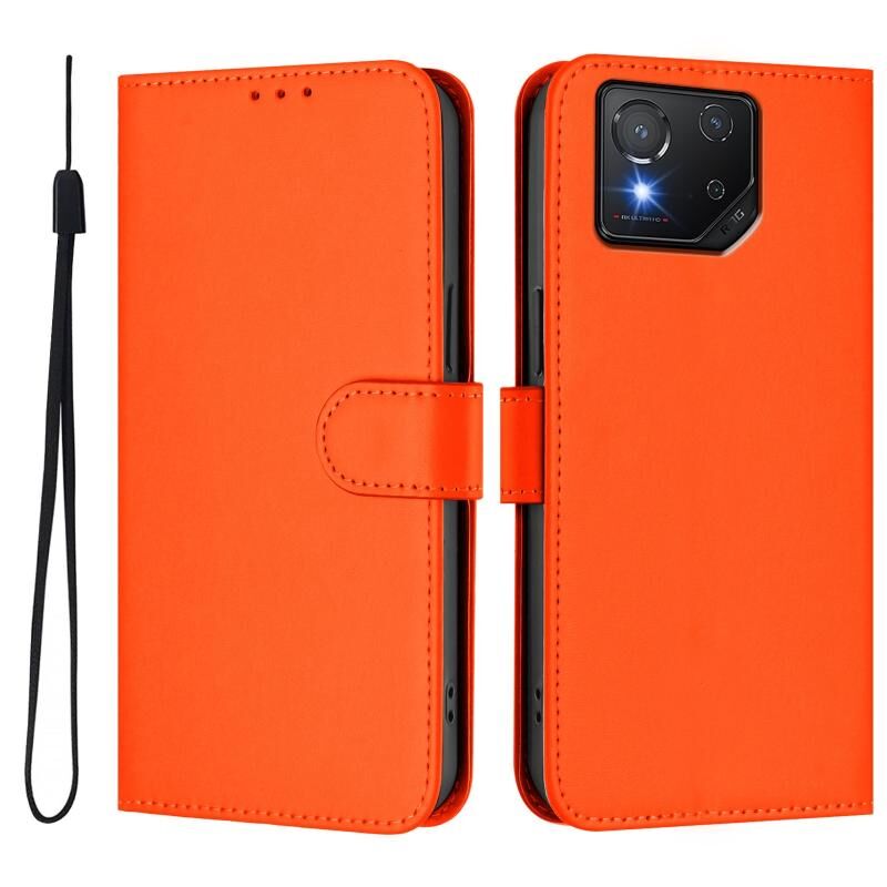 For Asus ROG Phone 8 / 8 Pro Skin Feel Solid Color Leather Phone Case with Lanyard(Orange)