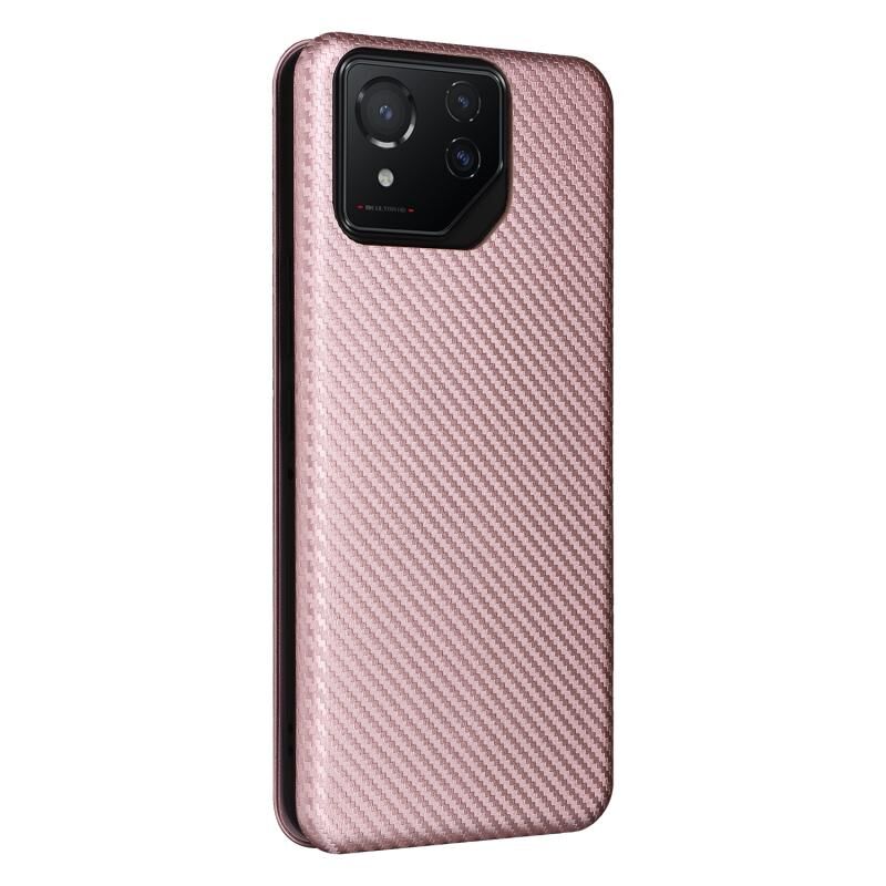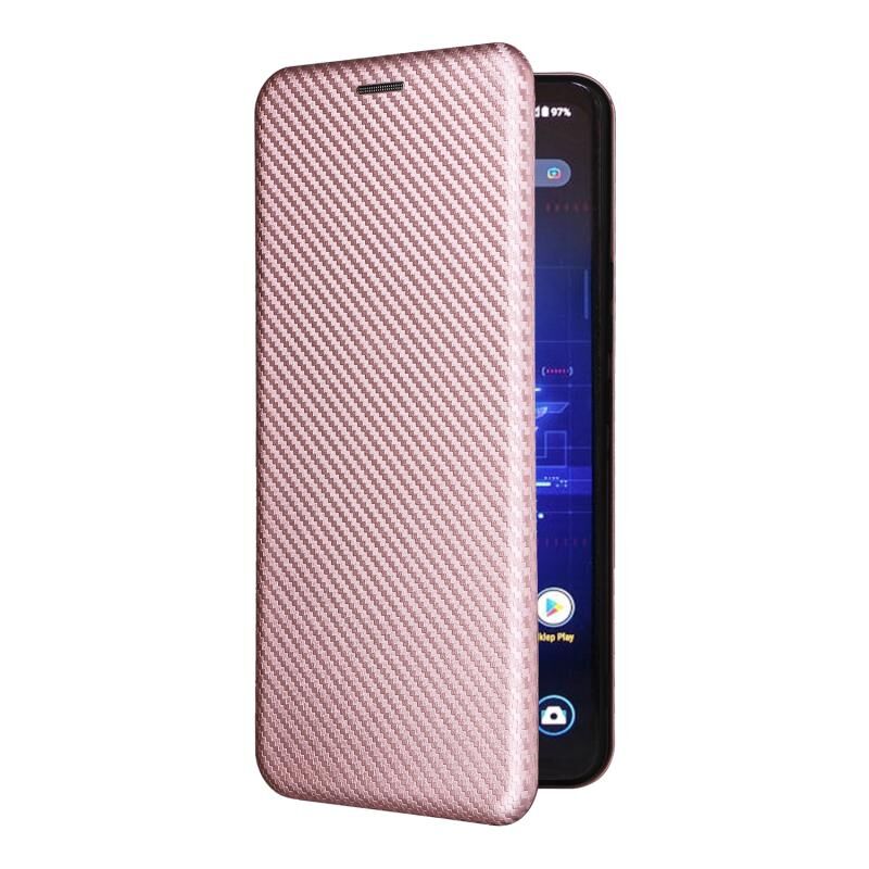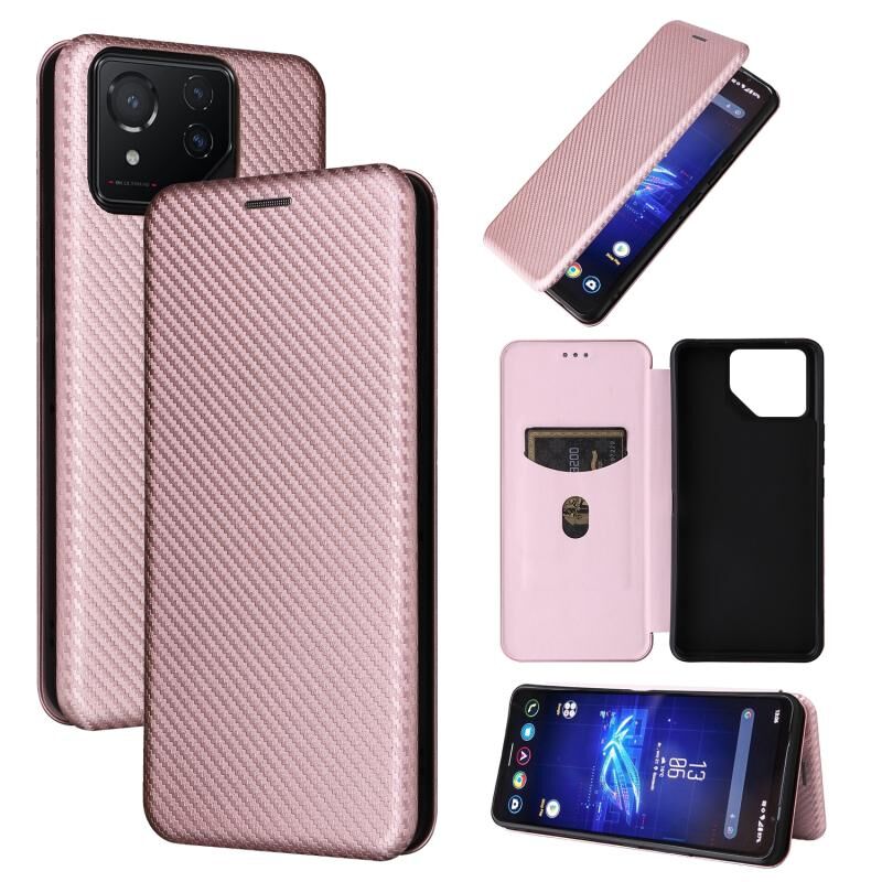 Για ASUS ROG Phone 8 Carbon Fiber Texture Flip δέρμα τηλέφωνο υπόθεση (ροζ)