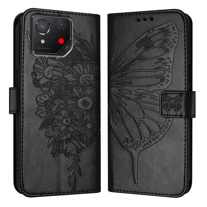 For Asus ROG Phone 8 Embossed Butterfly Leather Phone Case(Black)