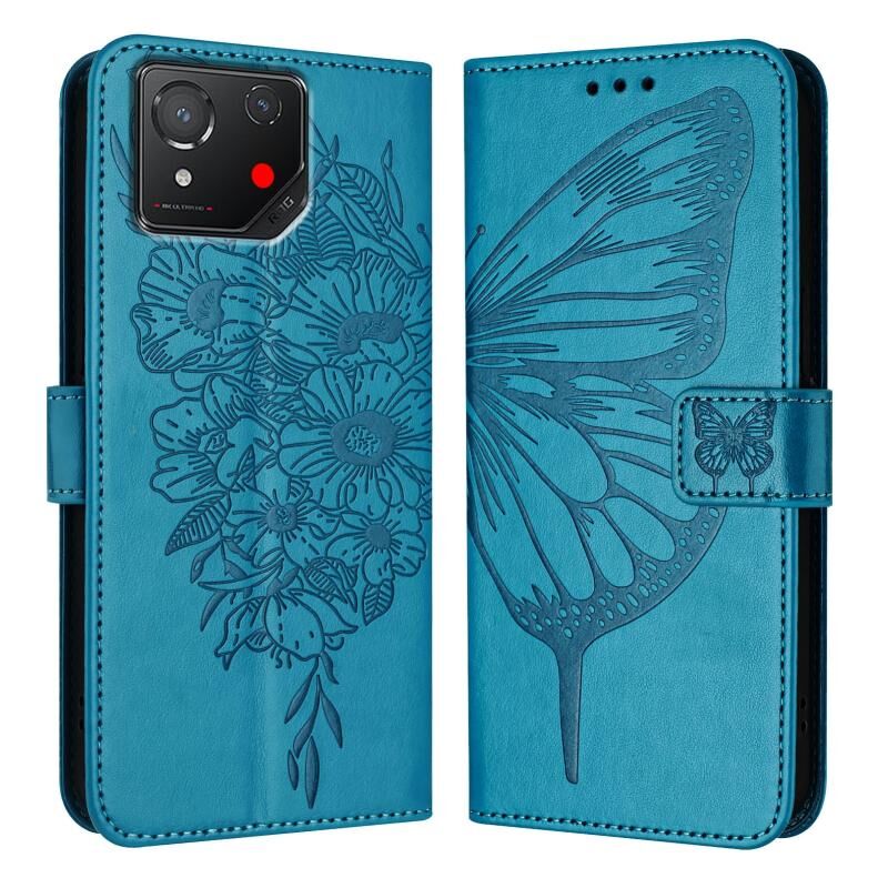 For Asus ROG Phone 8 Embossed Butterfly Leather Phone Case(Blue)