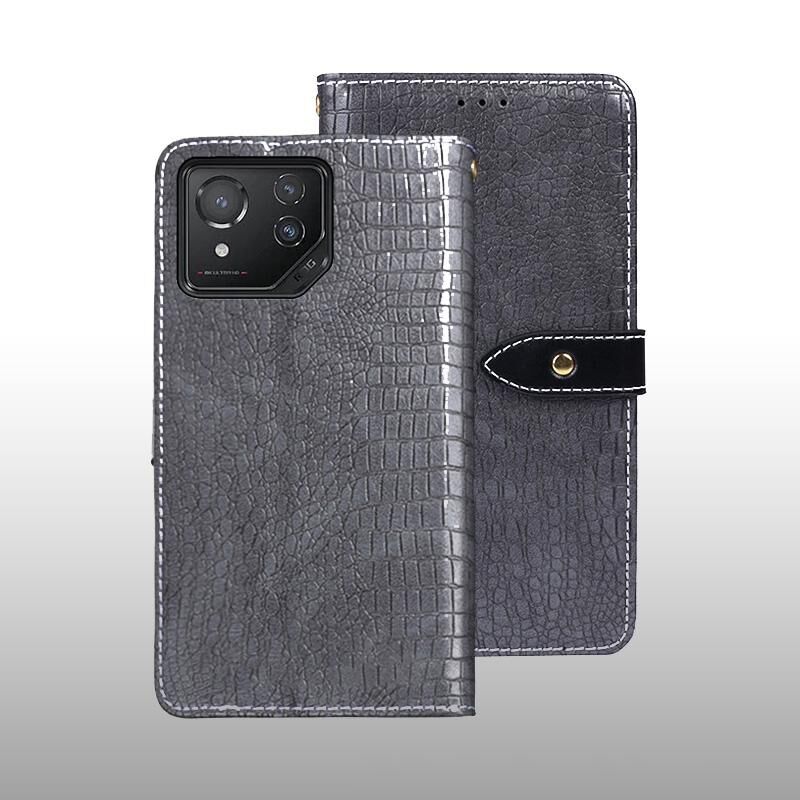 Θήκη τηλεφώνου από δέρμα με υφή κροκόδειλου idewei για ASUS ROG Phone 8 (Γκρι) (idewei)