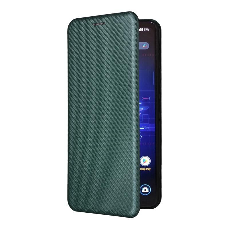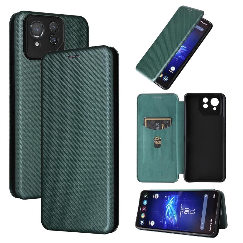 Για ASUS ROG Phone 8 Pro Carbon Fiber Texture Flip δέρμα υπόθεση τηλεφώνου (πράσινο)