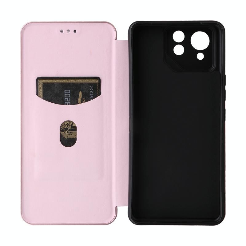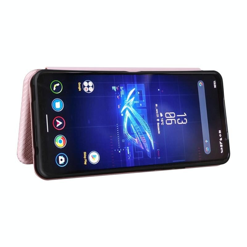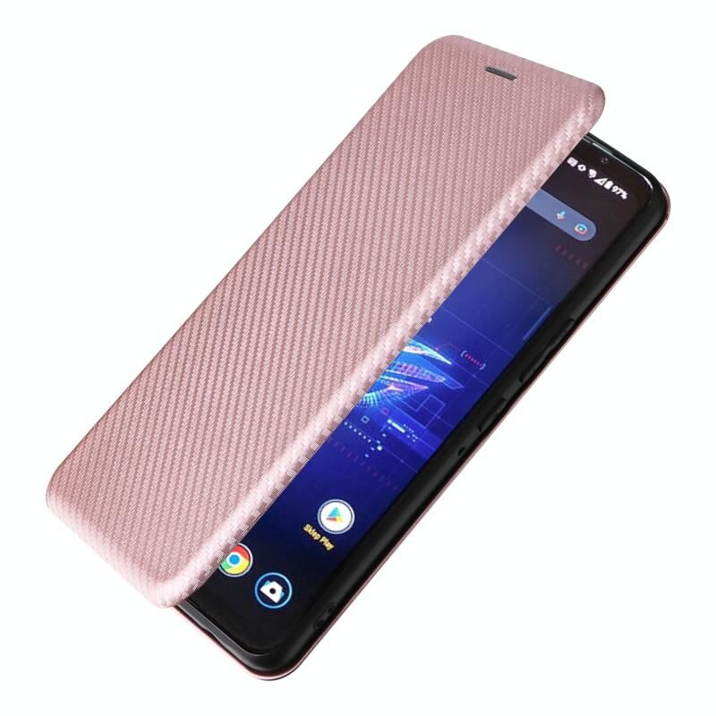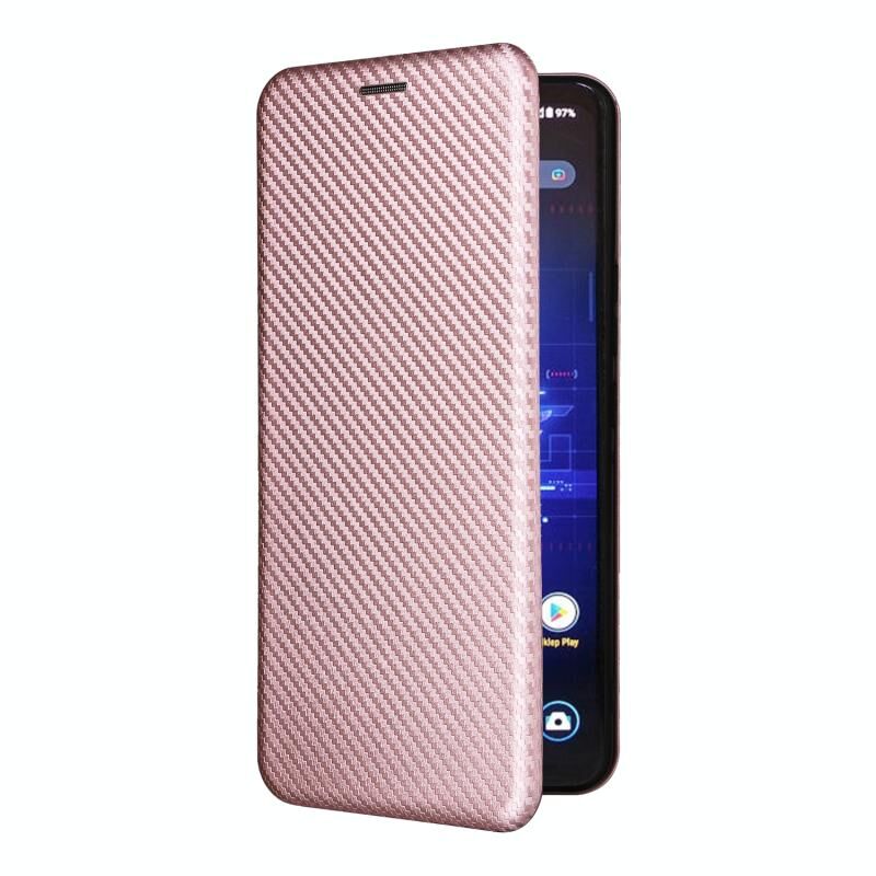 Για ASUS ROG Phone 8 Pro Carbon Fiber Texture Flip δέρμα τηλέφωνο υπόθεση (ροζ)
