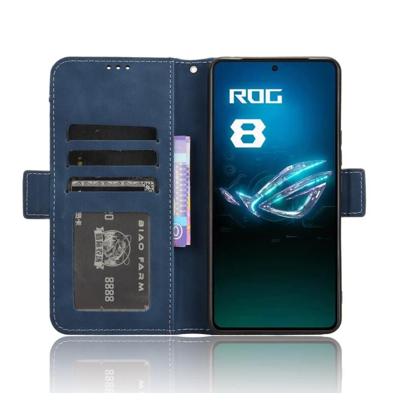 Για ASUS ROG τηλέφωνο 8 Pro δέρμα αίσθηση μοσχάρι υφή κάρτα υποδοχές δερμάτινη θήκη τηλεφώνου (μπλε)