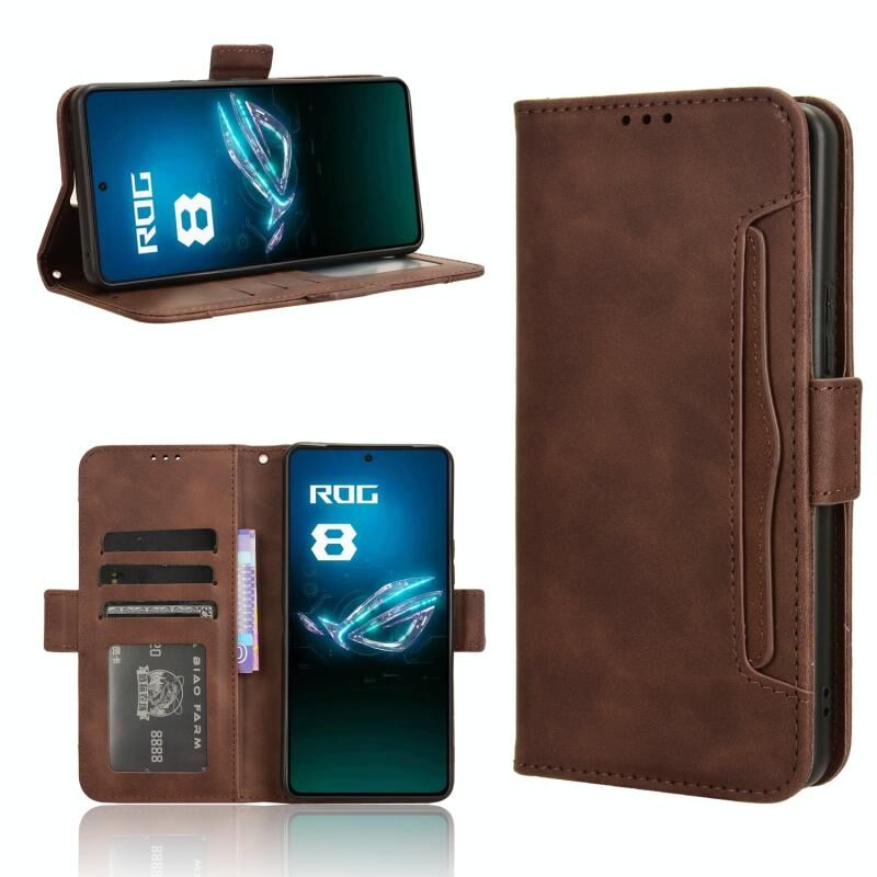 Για ASUS ROG τηλέφωνο 8 Pro δέρμα αίσθηση μοσχάρι υφή κάρτα υποδοχές δερμάτινη θήκη τηλεφώνου (καφέ)