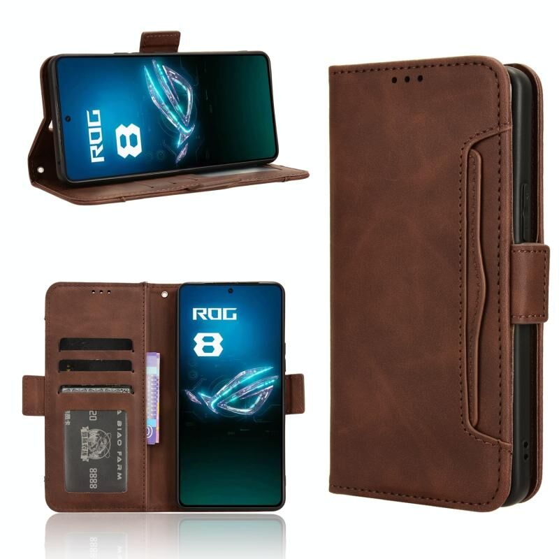 Θήκη τηλεφώνου από δέρμα με υφή μοσχαριού και θήκες καρτών για Asus ROG Phone 8 Pro (Ροζ)
