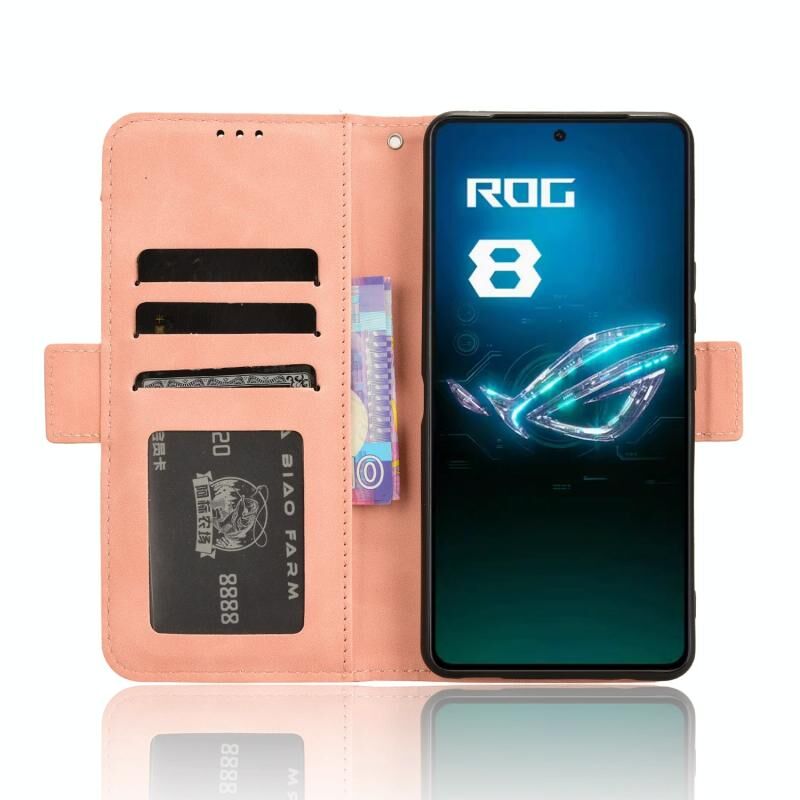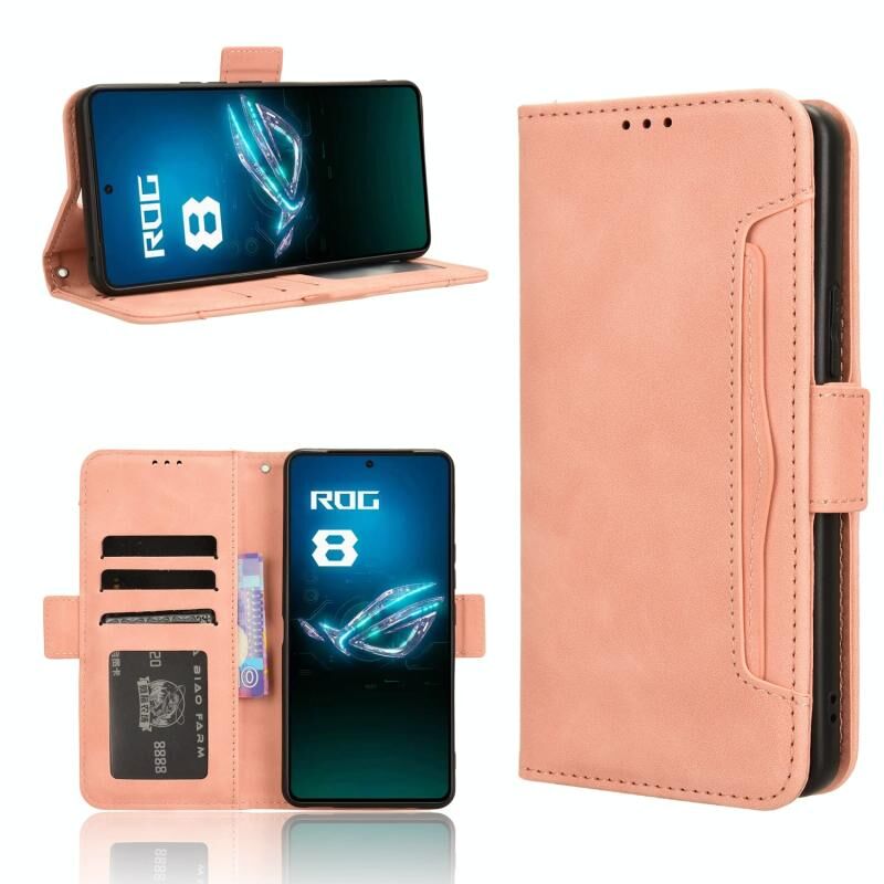 Θήκη τηλεφώνου από δέρμα με υφή μοσχαριού και θήκες καρτών για Asus ROG Phone 8 Pro (Ροζ)