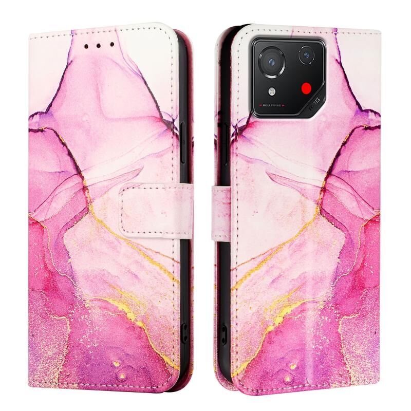 Θήκη τηλεφώνου από δέρμα με σχέδιο μαρμάρου για Asus ROG Phone 8 PT003 (Ροζ Μωβ Χρυσό)