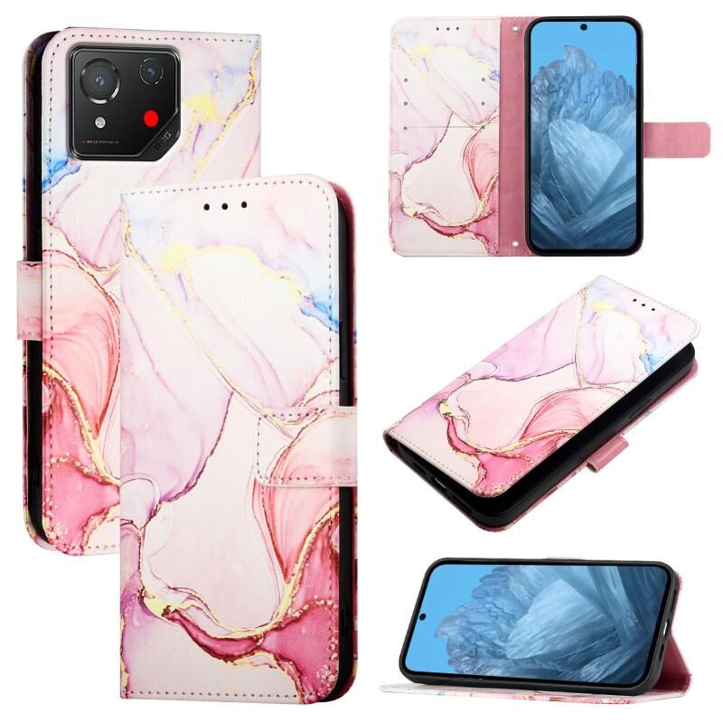 Θήκη τηλεφώνου από δέρμα με σχέδιο μαρμάρου για Asus ROG Phone 8 PT003 (Ροζ χρυσός)