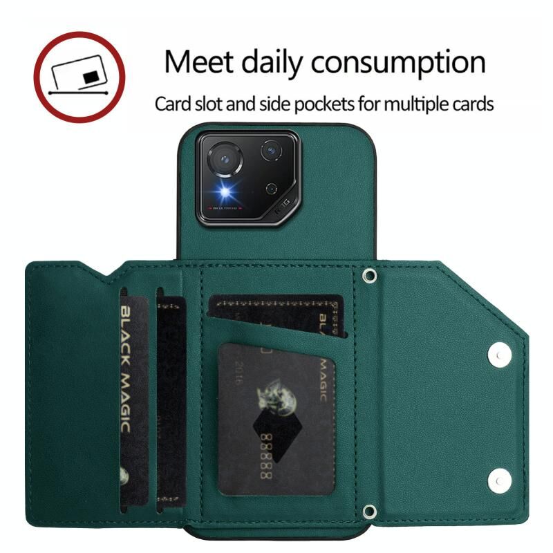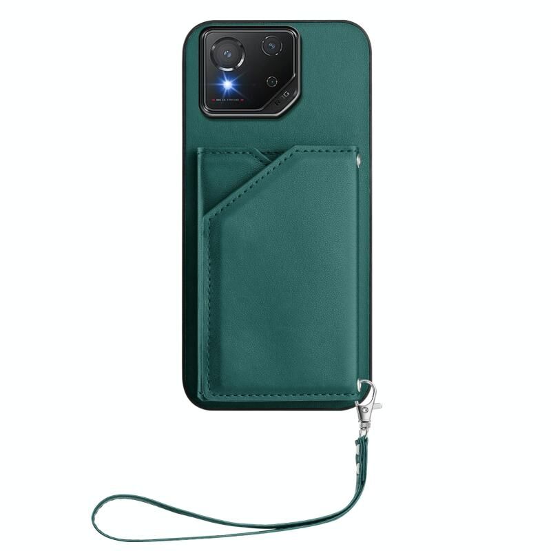 Για Asus ROG τηλέφωνο 8 δέρμα αίσθηση τέσσερις υποδοχές κάρτα τηλέφωνο υπόθεση με λουράκι καρπού (πράσινο)