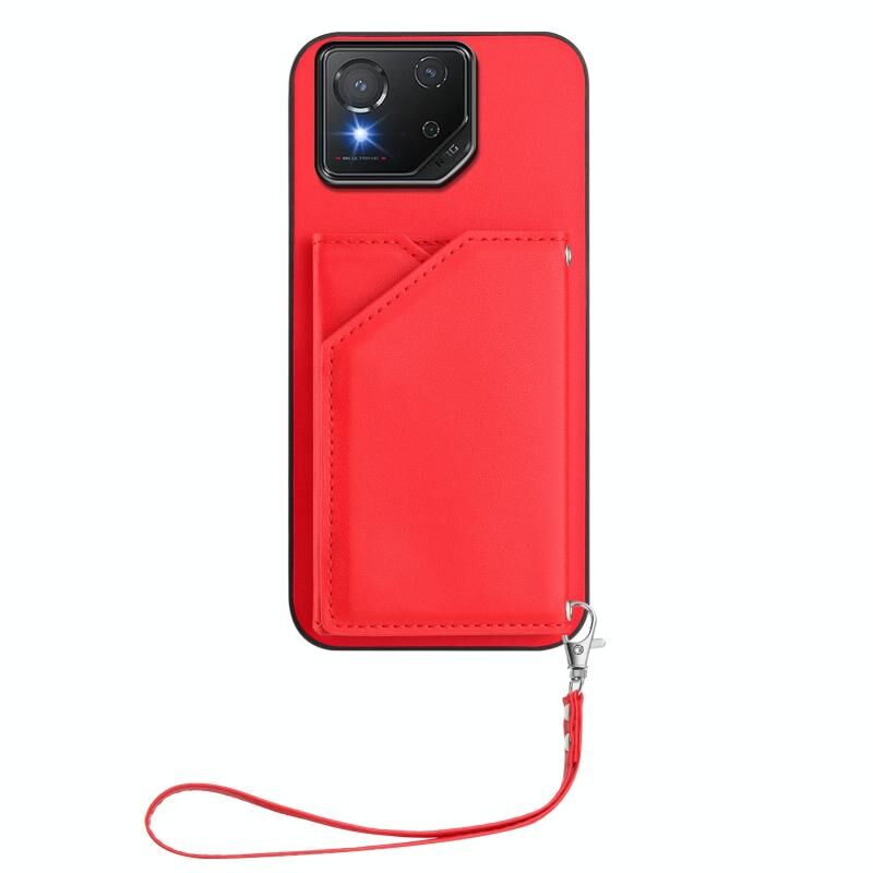 Για Asus ROG τηλέφωνο 8 δέρμα αίσθηση τέσσερις υποδοχές κάρτα τηλέφωνο υπόθεση με λουράκι καρπού (κόκκινο)