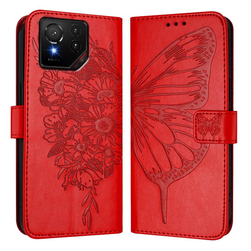 For Asus ROG Phone 9 / 9 Pro Embossed Butterfly Leather Phone Case(Red)
