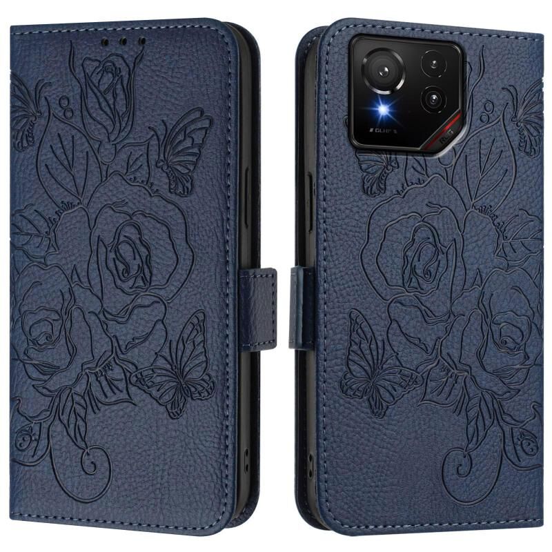 For Asus ROG Phone 9 / 9 Pro Embossed Rose RFID Anti-theft Leather Phone Case(Dark Blue)