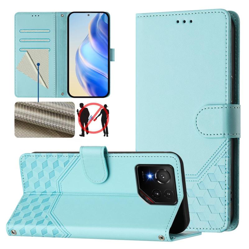 For Asus ROG Phone 9 / 9 Pro Honeycomb Embossing RFID Leather Phone Case(Mint Green)