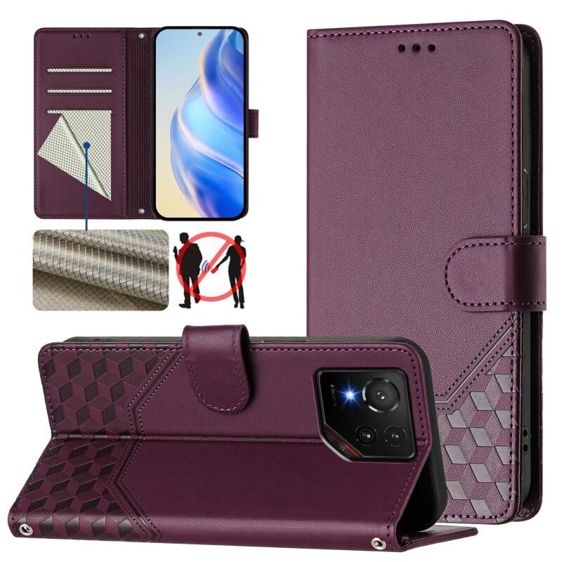 For Asus ROG Phone 9 / 9 Pro Honeycomb Embossing RFID Leather Phone Case(Violet)