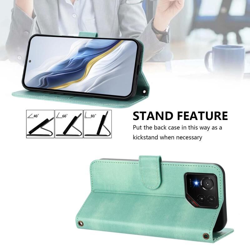 For ASUS ROG Phone 9 / 9 Pro Line Splicing Buckle Retro Leather Phone Case(Mint Green)