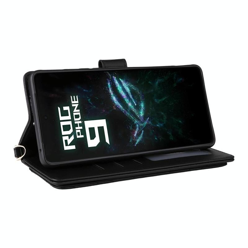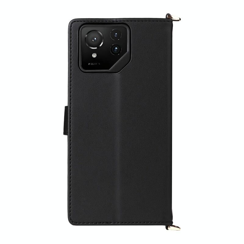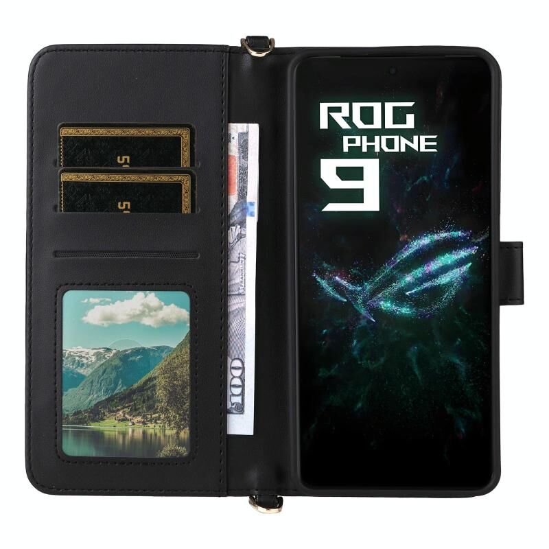 Θήκη τηλεφώνου από δέρμα, πολυλειτουργική, με 6 υποδοχές για κάρτες και λουρί καρπού για Asus ROG Phone 9 / 9 Pro (Ροζ)