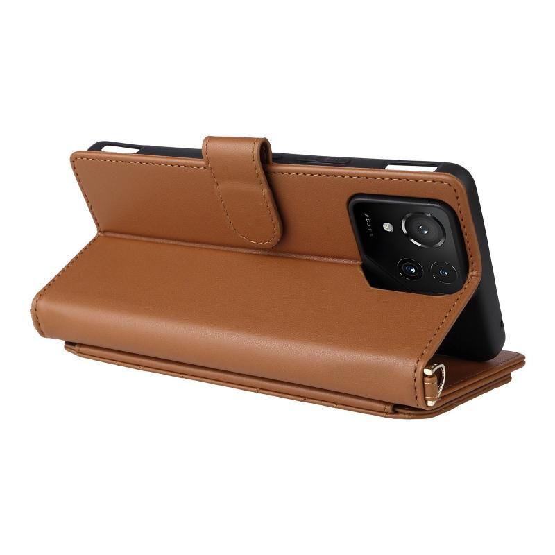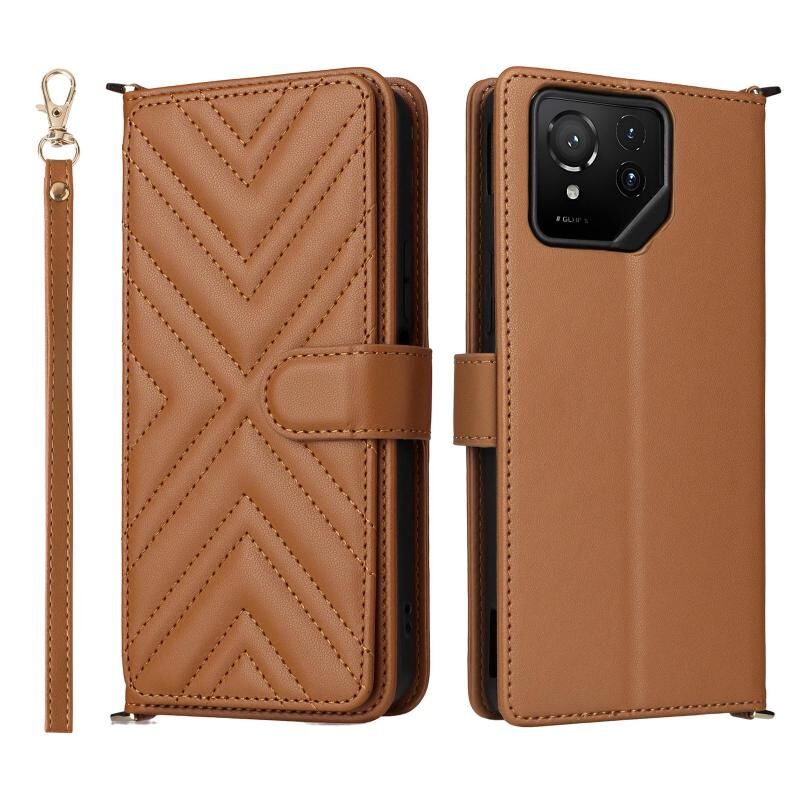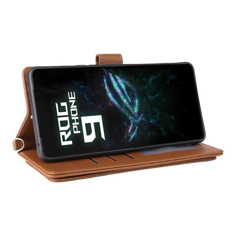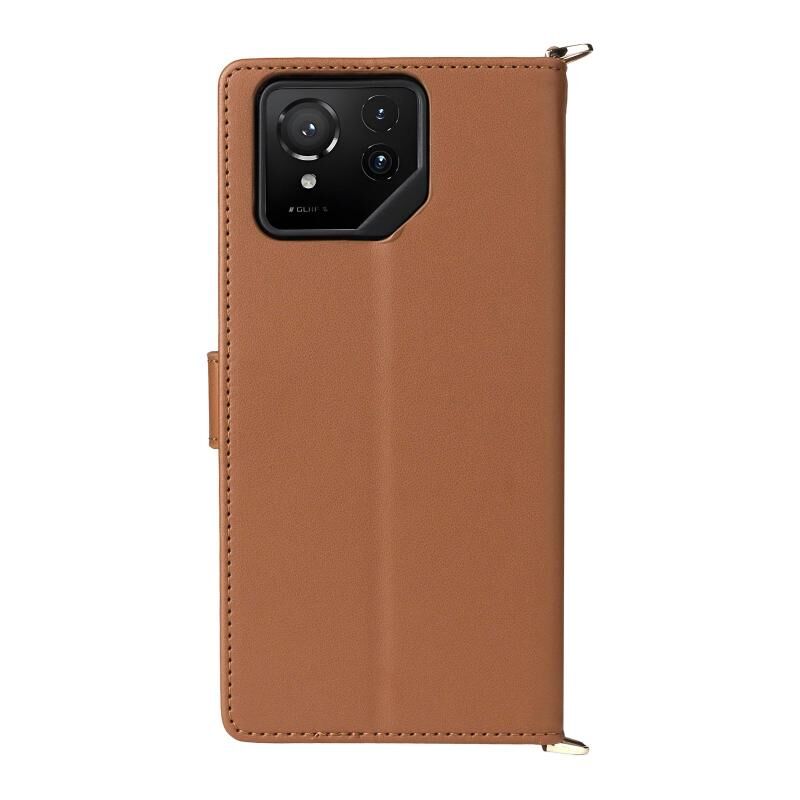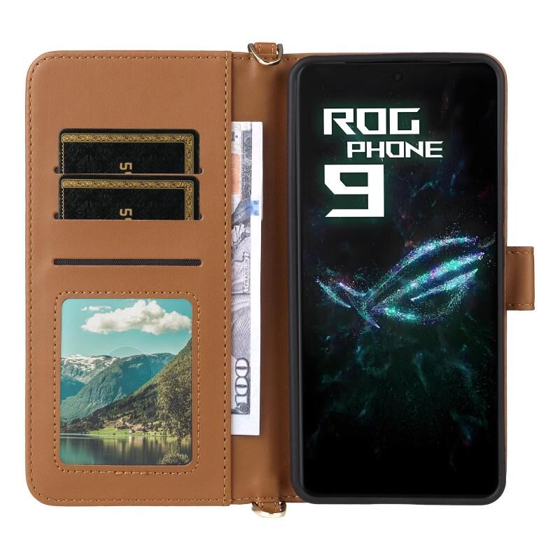 Θήκη τηλεφώνου από δέρμα, πολυλειτουργική, με 6 υποδοχές για κάρτες και λουρί καρπού για Asus ROG Phone 9 / 9 Pro (Ροζ)