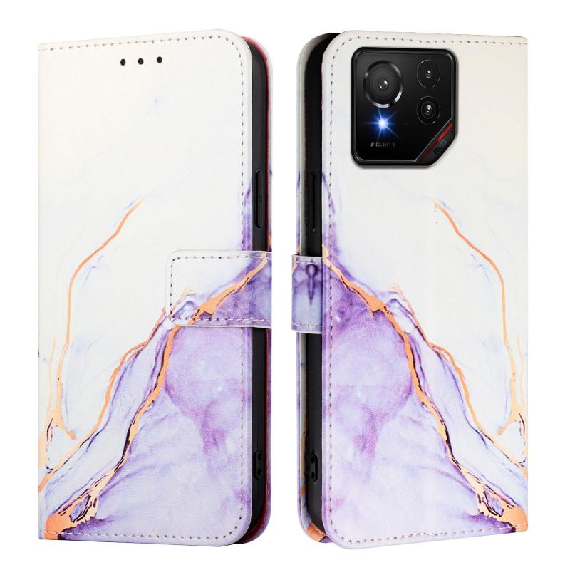 For Asus ROG Phone 9 / 9 Pro PT003 Marble Pattern Flip Leather Phone Case(White Purple)