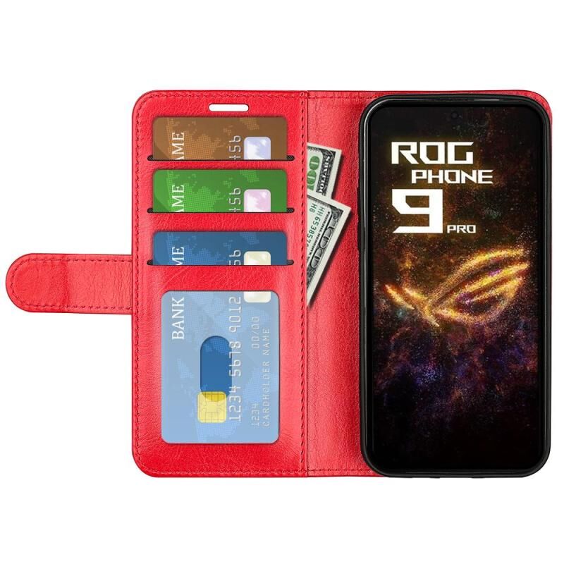 Θήκη τηλεφώνου από δέρμα με οριζόντιο άνοιγμα και υφή R64 για Asus ROG Phone 9 / 9 Pro (Μαύρο)
