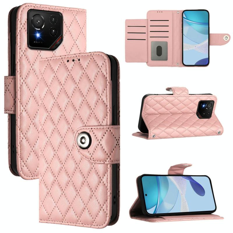 For Asus ROG Phone 9 / 9 Pro Rhombic Texture Flip Leather Phone Case with Lanyard(Coral Pink)