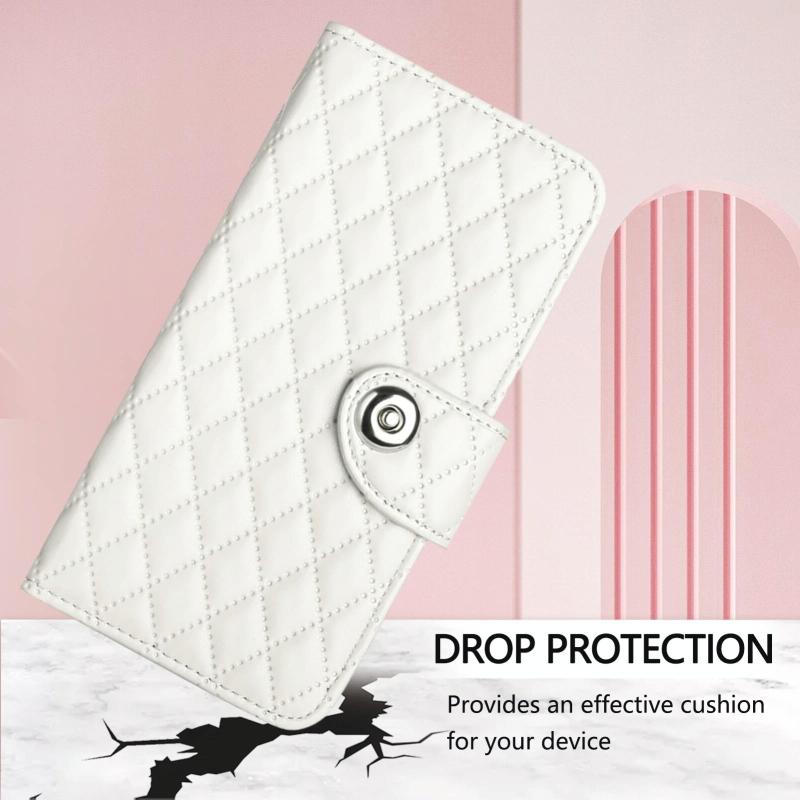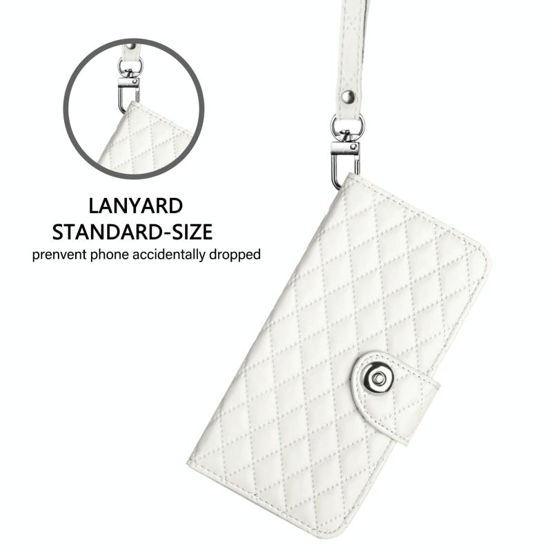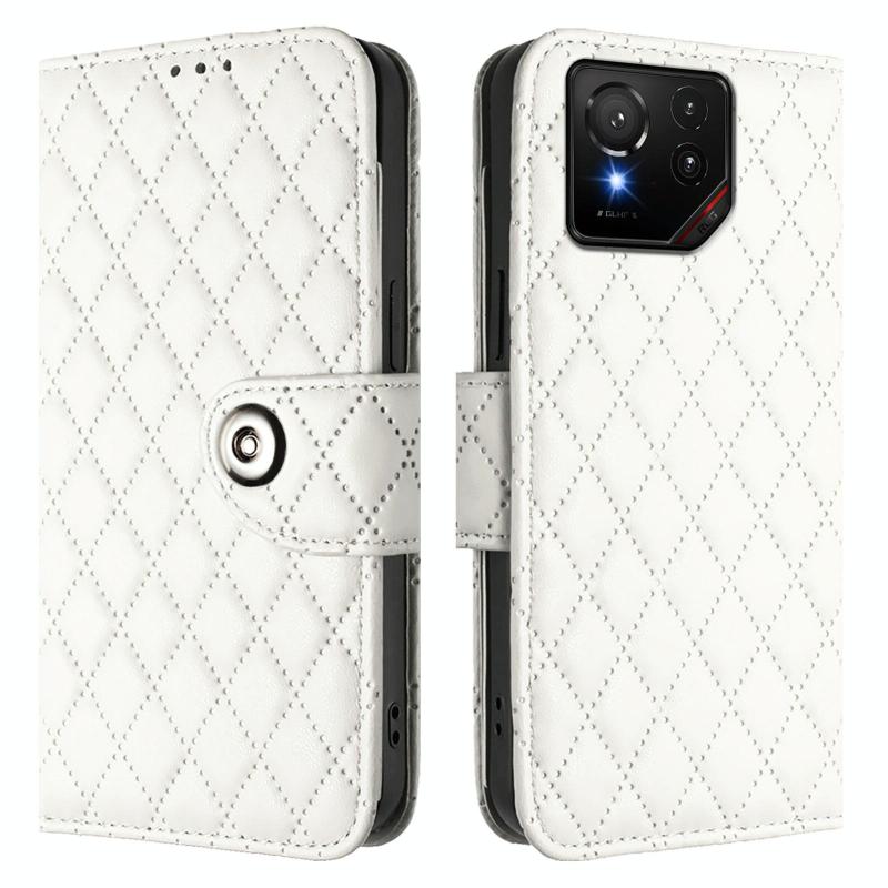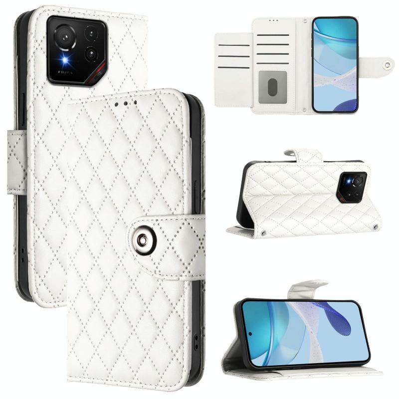 For Asus ROG Phone 9 / 9 Pro Rhombic Texture Flip Leather Phone Case with Lanyard(White)
