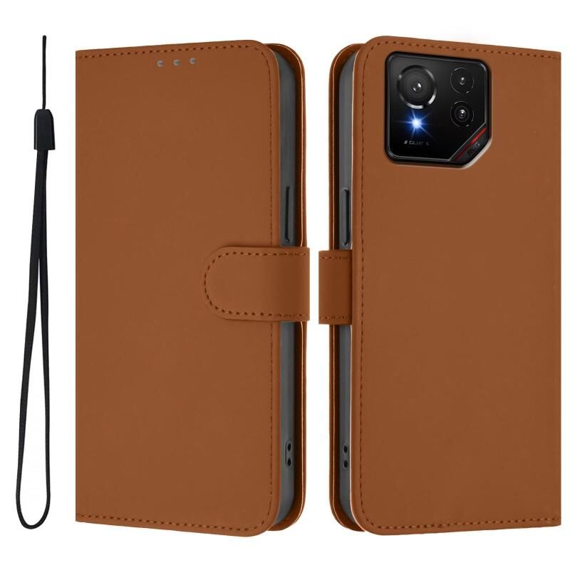 For Asus ROG Phone 9 / 9 Pro Skin Feel Solid Color Leather Phone Case with Lanyard(Brown)