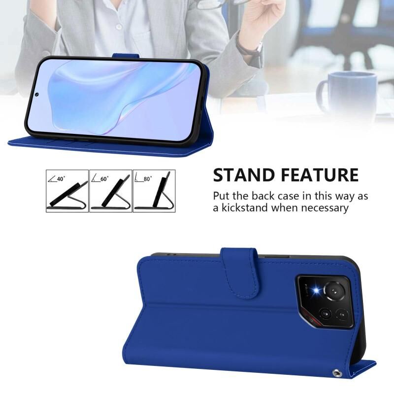 For Asus ROG Phone 9 / 9 Pro Skin Feel Solid Color Leather Phone Case with Lanyard(Dark Blue)
