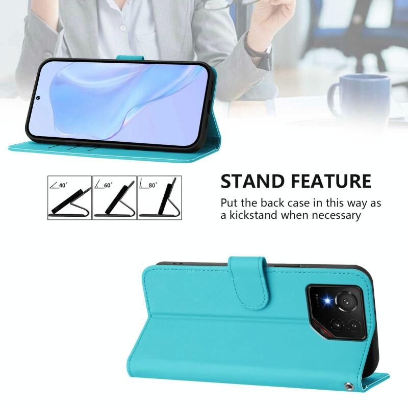 Για το Asus ROG Phone 9 / 9 Pro Skin Feel Solid Color δερμάτινη θήκη τηλεφώνου με κορδόνι (Lake Blue)