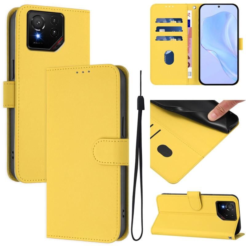 For Asus ROG Phone 9 / 9 Pro Skin Feel Solid Color Leather Phone Case with Lanyard(Lemon Yellow)