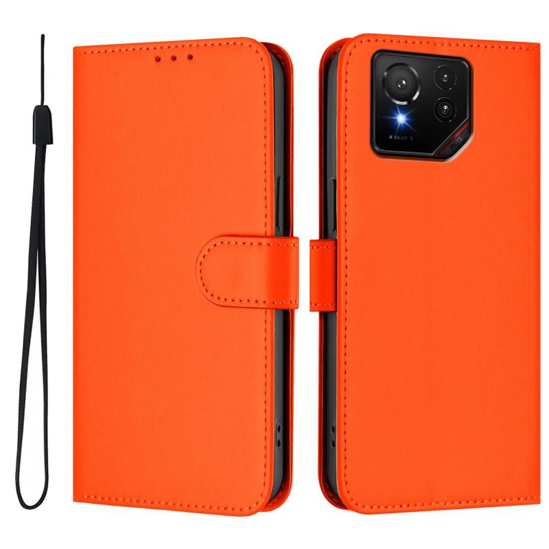 For Asus ROG Phone 9 / 9 Pro Skin Feel Solid Color Leather Phone Case with Lanyard(Orange)