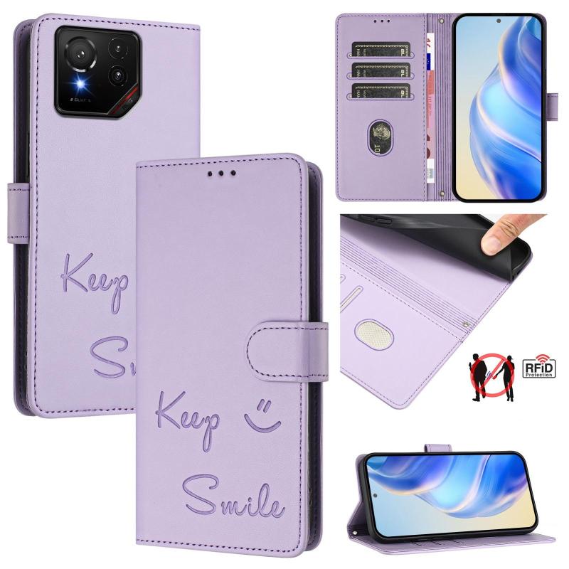 For Asus ROG Phone 9 / 9 Pro Smile Embossing RFID Leather Phone Case(Light Purple)