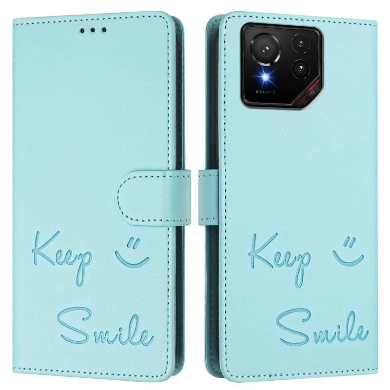 Θήκη τηλεφώνου από δέρμα με ανάγλυφο χαμόγελο και τεχνολογία RFID για Asus ROG Phone 9 / 9 Pro (Μέντας πράσινο)