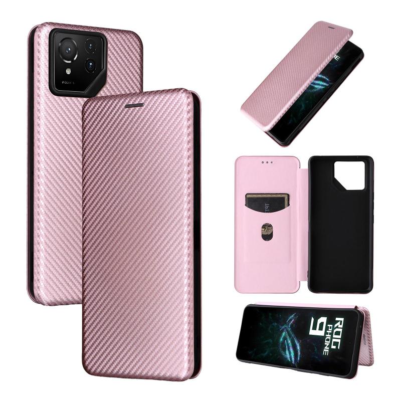 For ASUS ROG Phone 9 Carbon Fiber Texture Flip Leather Phone Case(Pink)