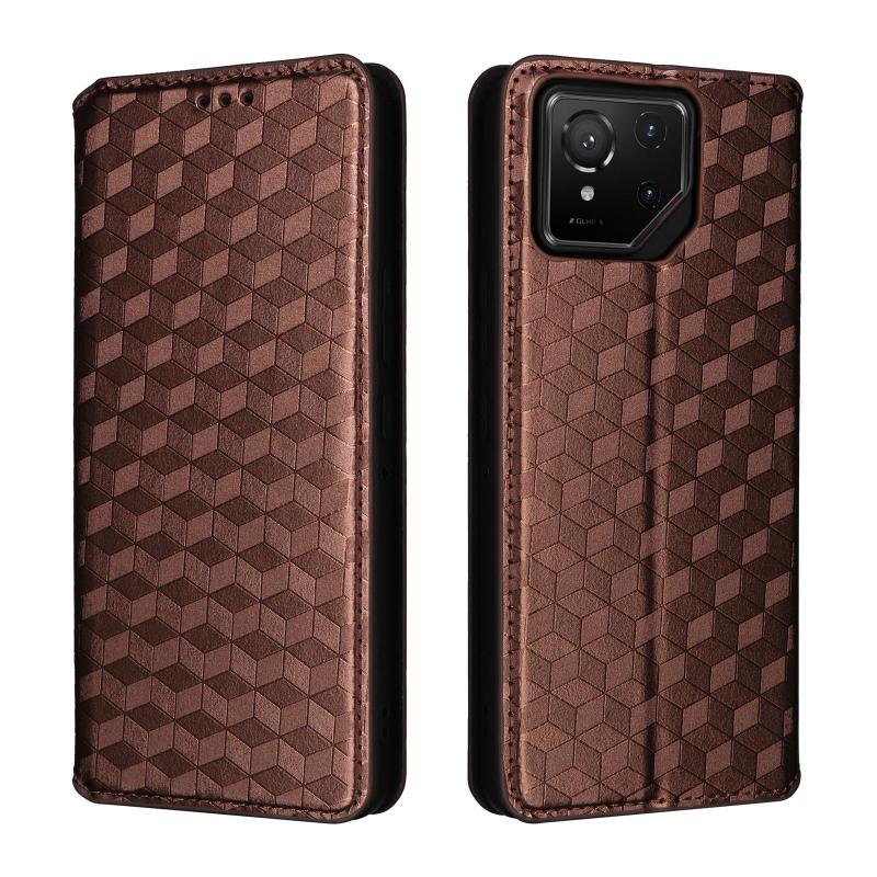 For Asus ROG Phone 9 / ROG Phone 9 Pro Cubic Grid Texture Flip Leather Phone Case(Brown)