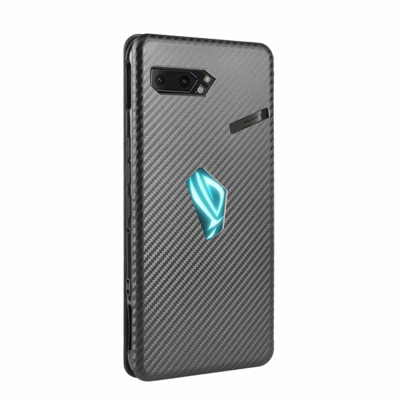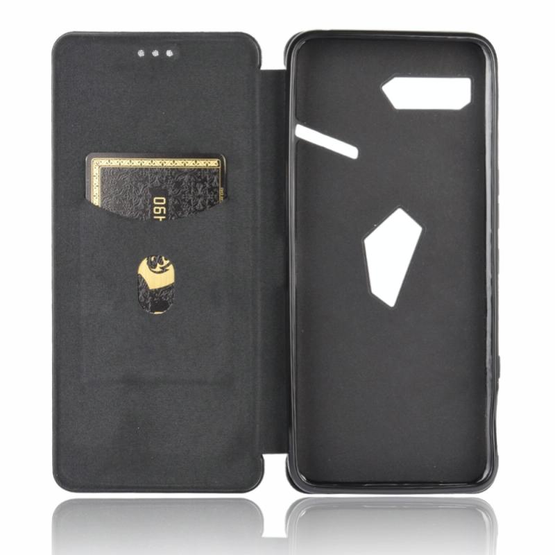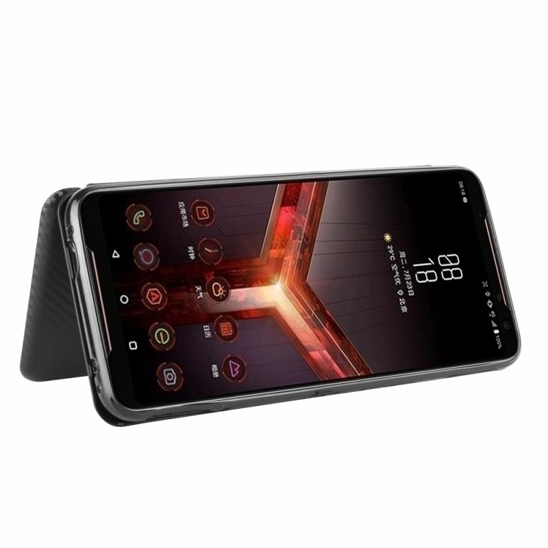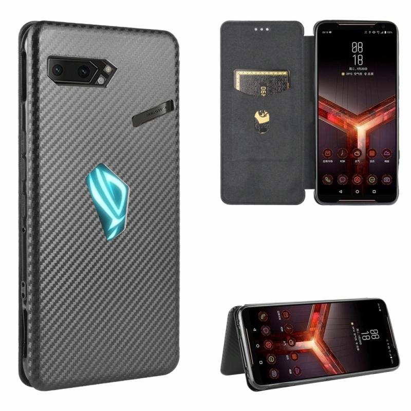 For Asus ROG Phone II Carbon Fiber Texture Horizontal Flip TPU + PC + PU Leather Case with Card Slot(Black)